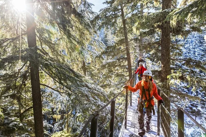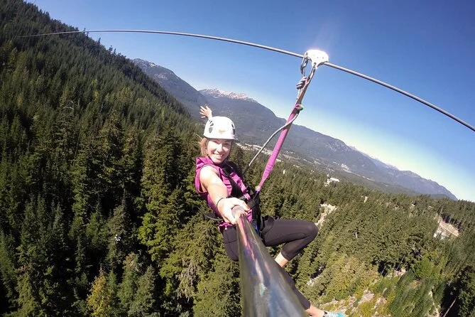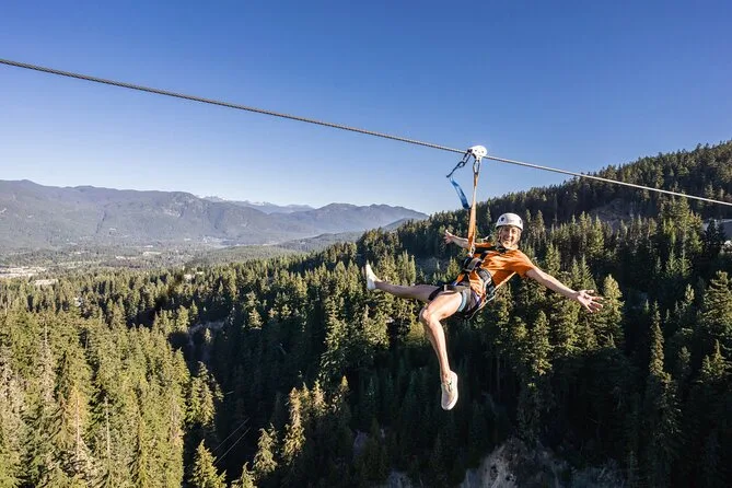 Dein Tag beginnt mit Abholung im Whistler Village per Van oder Gondel, je nach Route. Du bekommst alle nötigen, desinfizierten Gurte und Helme für die Zipline über mehrere Strecken zwischen Blackcomb und Whistler Mountains. Professionelle Guides übernehmen alle Sicherheitschecks und bringen dich nach dem Abenteuer sicher zurück ins Dorf.