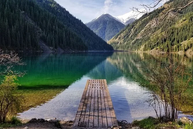 Dein Tag startet mit Abholung in Almaty im privaten Auto mit USB-Ladestationen an jedem Sitz, inklusive Eintritt für Charyn Canyon und beide Seen, professioneller lokaler Führung während der gesamten Tour – auch bei den Transfers – sowie wasserdichten Schuhüberzügen bei Matsch oder Nässe. Für den Abschnitt bei Saty und zum Kaindy-See steigst du in klassische UAZ-Geländewagen um. Mittagessen gibt’s in einem Café am Kolsai-See, wo du Pilaw oder Lagman probieren kannst, bevor es weiter zu neuen Aussichten geht, sobald du aus dem Wagen steigst.