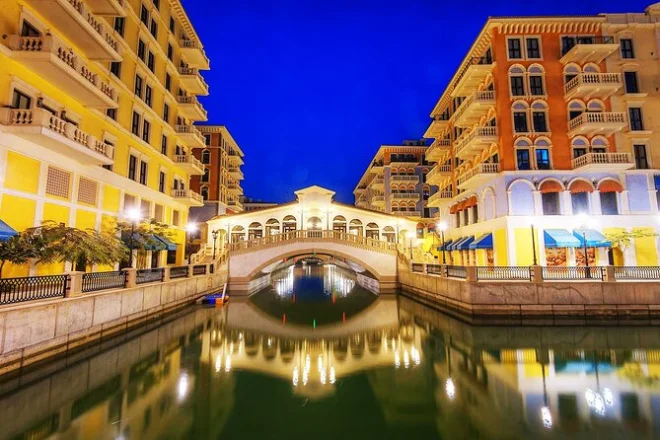 Khalid hielt das Tempo, ohne zu hetzen. Im Katara Cultural Village zeigte er auf die Fliesen der Blauen Moschee, die in der Sonne schimmerten („Persischer Stil – siehst du das Gold?“), dann schlenderten wir an einem Amphitheater vorbei, wo Kinder Tauben über die Marmorstufen jagten. Danach ging’s zur Pearl-Qatar – pastellfarbene Häuser, Yachten, die sanft im Wasser schaukelten, so sauber, dass es fast unwirklich wirkte. Wir machten Fotos an den kleinen Brücken von Qanat Quartier; ich versuchte, mit dem Handy künstlerisch zu werden, landete aber meistens nur bei Lachanfällen über mich selbst.
