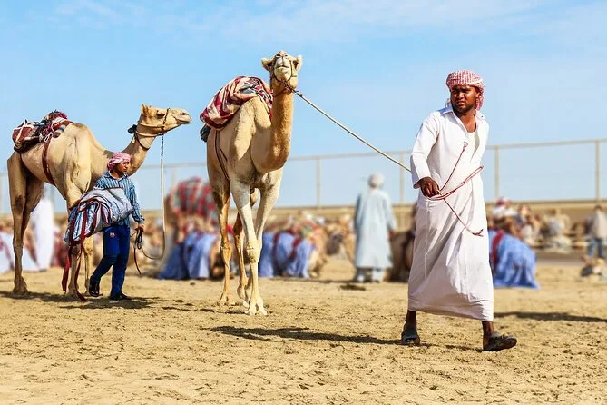 Erlebe Kameltraining am Rennplatz in Al Shahaniya mit den berühmten Roboter-Jockeys, entdecke seltene Schätze im Sheikh Faisal Bin Qassim Museum im Al Samriya Estate, beobachte frei laufende Oryxe und Pfauen und besuche Katars einzige schiefe Moschee. Mit Abholung, privatem Transport, Getränken und einem lokalen Guide, der spannende Geschichten erzählt – ein Erlebnis, das du lange nach deiner Abreise aus Doha nicht vergisst.