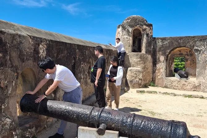 Dein Tag beinhaltet eine geführte Besichtigung von Fort Jesus, eine Flasche Wasser zum Erfrischen und eine Tuk Tuk Fahrt durch die Stadt mit deinem zertifizierten Guide. Außerdem bleibt genug Zeit, um auf lokalen Märkten zu stöbern – bring am besten Bargeld für Souvenirs oder Snacks mit.