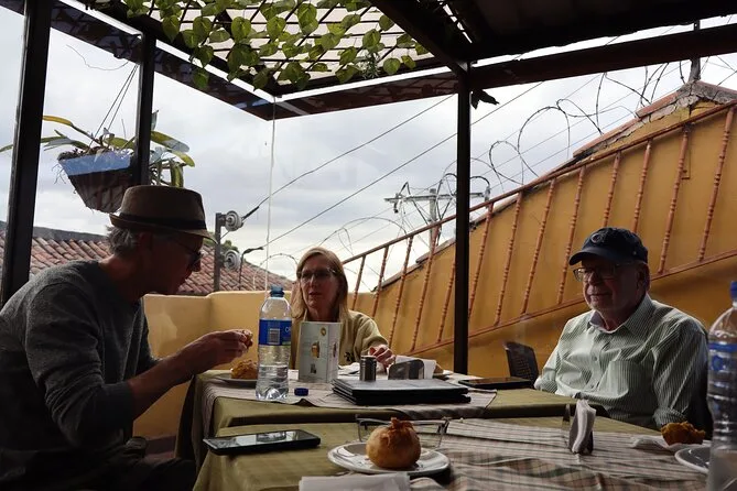 Dein Tag startet mit der Fahrt auf Monserrate per Seilbahn oder Standseilbahn für die morgendliche Aussicht über Bogotá; dazu gibt es zahlreiche Kostproben zum Frühstück und Mittagessen beim Bummel durch lokale Märkte und Restaurants; alle Museumseintritte sind inklusive; und ein Guide, der jeden Winkel von Candelaria kennt – also komm hungrig und neugierig.