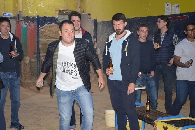 Abholung und Rückfahrt zum Hotel sind inklusive. Du bekommst mindestens vier lokale Biere (oder alkoholfreie Getränke, wenn du möchtest), die komplette Ausrüstung für Tejo, Eintritt zum Spielfeld mit Reservierung und einen freundlichen Guide, der dich durch alles begleitet – und ja, die Versicherung ist auch dabei.