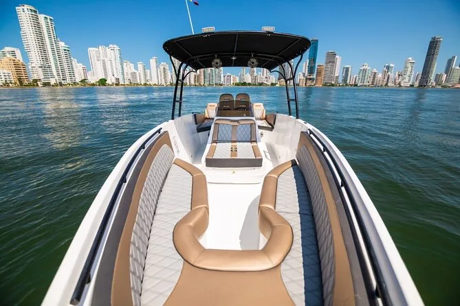 Verbringe deinen Tag auf einer privaten Bootstour von Cartagena entlang türkisblauem Wasser mit eigenem Kapitän und Guide. Schwimme bei den Rosario-Inseln oder feiere im lebhaften Cholon – die Route bestimmst du. Genieße Musik über hochwertige Lautsprecher, entspanne auf Ledersitzen oder Sonnenbetten und kühle dich mit Frischwasserduschen und viel Eis für deine Getränke ab. Diese Wärme wirst du noch lange nach der Rückkehr spüren.