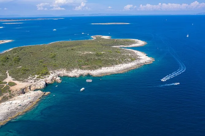 Die Sonne wärmte schon angenehm auf meinen Schultern, als wir mittags den Hafen von Medulin verließen. Das Boot Rio summte entspannt vor sich hin, und die salzige Brise trug den leichten Duft von Sonnencreme und Kiefernnadeln vom Ufer herüber. Unser Guide Luka zeigte uns die ersten Inseln vor Pula – klein, grün und still, nur ein paar Fischer winkten aus ihrem Ruderboot. Das Wasser war kristallklar, man konnte bis auf den Grund sehen, wo Seegras wogte und kleine Fische flink hin und her schossen.