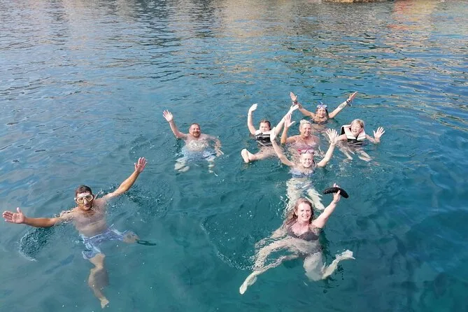 Die Tour startet um 12:00 Uhr und endet gegen 17:00 Uhr – also etwa fünf Stunden inklusive Schwimm- und Essenspausen.