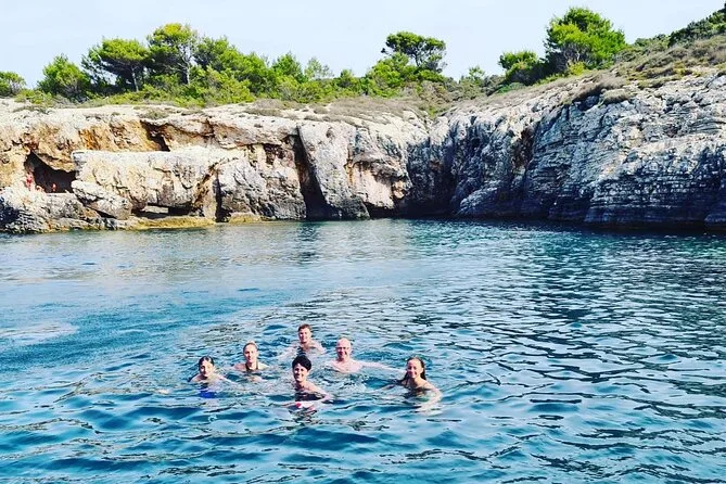 Die Fahrt nach Kamenjak dauerte etwa 50 Minuten, aber es fühlte sich viel kürzer an. Eine besondere Ruhe legte sich über alle, als wir näher kamen – steile Klippen, kreisende Seevögel, und dann fragte Luka, ob jemand in die Höhle schwimmen wolle. Ich zögerte (kaltes Wasser ist nicht so meins), sprang aber schließlich doch rein. Das Wasser schmeckte fast metallisch in der Nähe der Felsen. In der Höhle war es kühler und hallte nach, fast wie in einer Glocke. Einige blieben einfach an Deck, fütterten die Fische oder genossen die Sonne – ehrlich gesagt, beides klang perfekt.