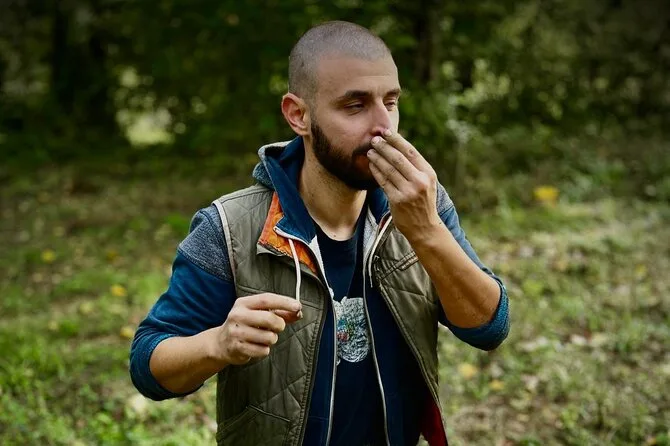 Dein Tag beinhaltet eine geführte Wanderung durch den Motovun-Wald auf Trüffelsuche mit ausgebildeten Hunden, begleitet von der Familie Svilicic, die ihr jahrzehntelanges Wissen mit dir teilt.