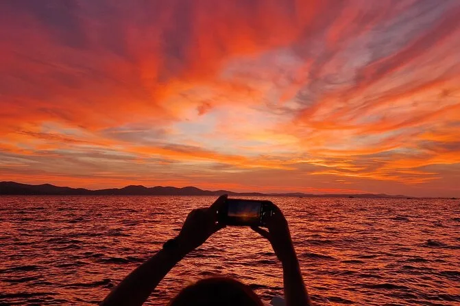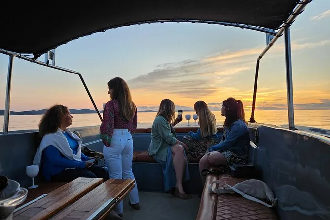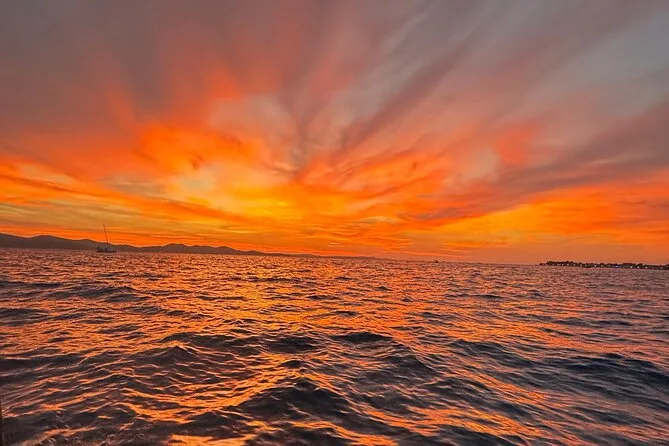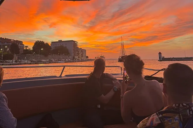 Dein Abend beinhaltet eine entspannte Bootsfahrt ab Hafen Foša mit einem lokalen Guide am Steuer, ein erfrischendes Getränk (Aperol Spritz oder Prosecco), Musik an Bord und genug Zeit, um die Sehenswürdigkeiten Zadars und den berühmten Sonnenuntergang zu genießen, bevor es zurück an Land geht.