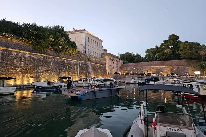 Die Tour startet im Hafen Foša, Zadars ältestem Hafen, umgeben von alten Steinmauern.