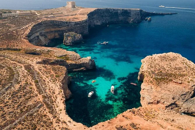Von Maltas Marfa oder Ċirkewwa legst du direkt zur Blauen Lagune auf Comino ab – ohne feste Zeiten. Schwimm im klaren Wasser, erkunde unterwegs Meereshöhlen und entscheide dann, ob du weiter nach Gozo willst oder lieber noch länger an der Lagune chillst. Alles ganz entspannt – Handtuch einpacken und schauen, wohin der Tag dich bringt.