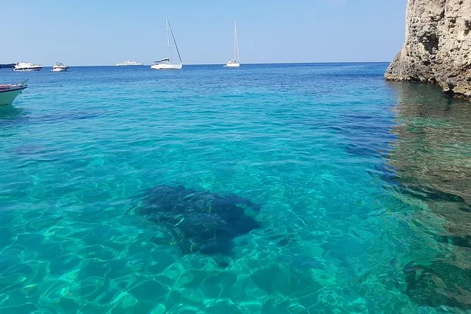 Kristallklares Wasser private Bootstour Malta Comino Höhlen Schwimmstopps