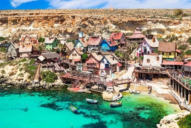 Zum Schluss besuchten wir die Mosta-Kuppel – Maria zeigte uns die Bombe, die im Zweiten Weltkrieg durchs Dach fiel, aber nie explodierte. Die Einheimischen sehen das als Glückszeichen oder Glaubensbeweis, je nachdem, wen man fragt. Das Innere der Kuppel ist mit beeindruckenden Mustern bemalt, sodass ich meinen Kopf viel zu lange in den Nacken legen musste (mein Nacken tut immer noch weh). Auf der Rückfahrt kamen wir an Popeye Village vorbei – auch wenn es etwas kitschig ist, zauberten die bunten Häuser am Wasser mir ein Lächeln ins Gesicht. So hatte ich mir eine Malta-Tagestour nicht vorgestellt – aber genau deshalb bleibt sie mir in Erinnerung.