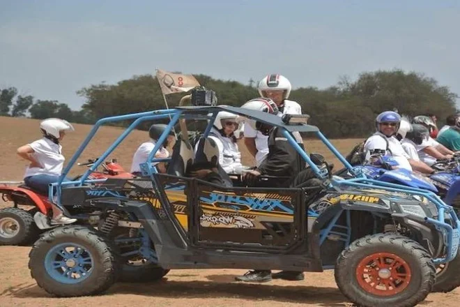 Staub wirbelte hinter uns auf, als wir die Stadt hinter uns ließen, die Morgensonne wärmte bereits die Luft. Unser Guide Youssef empfing uns in einem kleinen Berberdorf südlich von Agadir – er verteilte Helme und Schutzbrillen und sorgte dafür, dass sich jeder wohlfühlte, bevor wir losfuhren. Die Buggys sahen robust aus, aber keineswegs einschüchternd. Nach einer kurzen Einführung in die Bedienung von Gangschaltung und Bremsen (ehrlich gesagt, einfacher als gedacht) starteten wir auf Pfaden, die sich durch felsige Felder und wilde Thymianbüsche schlängelten. Man roch den Thymian jedes Mal, wenn wir langsamer wurden.