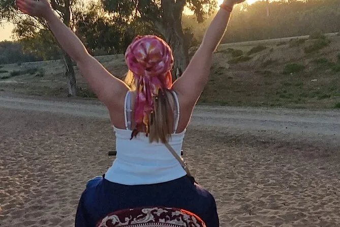 Wir kamen an kleinen Wildblumenfeldern vorbei – winzige gelbe Blüten – und Youssef zeigte uns Vögel, die jedes Frühjahr hierher ziehen. Er erzählte von seiner Kindheit in Agadir und wie sein Onkel ihn genau an diesen Ort zum Picknick mitgenommen hatte. Einmal winkten uns zwei Kinder hinter einem Zaun zu, ihr Lachen hallte über die Dünen. Alles fühlte sich langsam und entspannt an, überhaupt nicht gehetzt. Wenn du nach dem echten „Kamelritt bei Agadir“ suchst, ist das hier genau das Richtige – kein Schnickschnack, nur du, die Landschaft und vielleicht ein etwas eigensinniges Kamel.