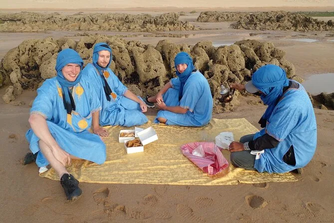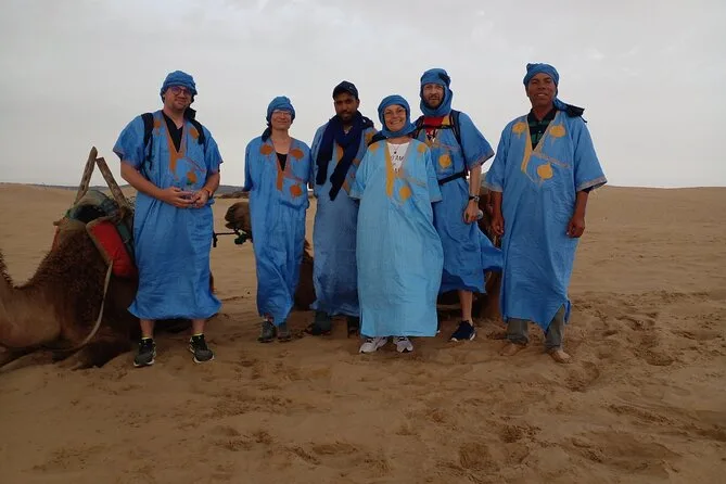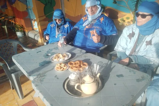 Dein Tag beinhaltet Abholung und Rückfahrt im klimatisierten Fahrzeug, Flaschenwasser zum Erfrischen und traditionelle blaue Deraâ-Roben, die bequem sind und auf Fotos toll aussehen – dazu die Begleitung eines Guides, der sich hier bestens auskennt.