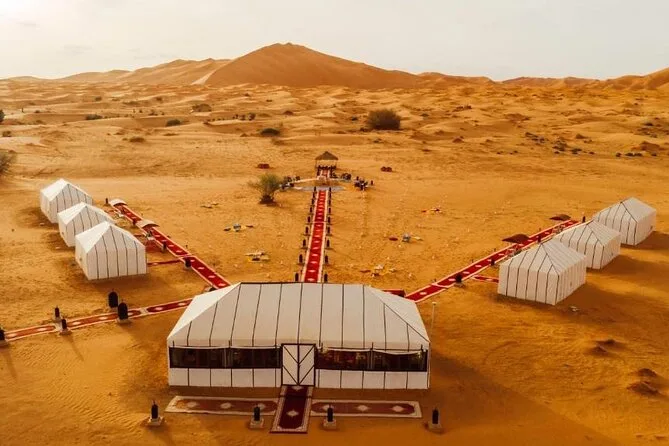 Du verbringst eine Nacht in einem privaten Zelt im Wüstencamp direkt an den Dünen bei Merzouga.