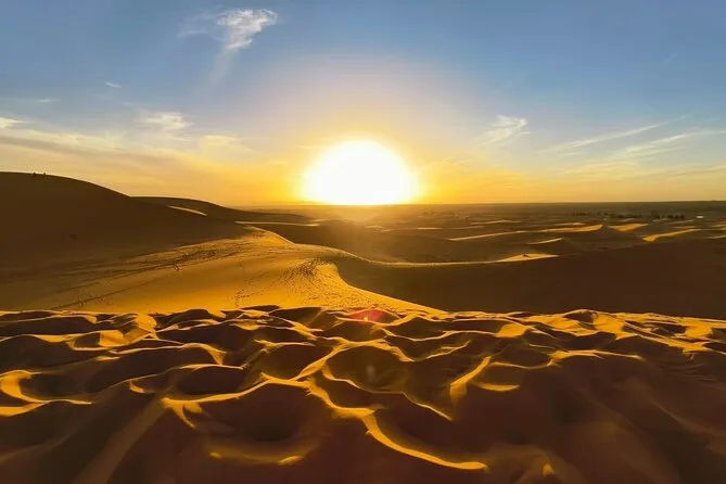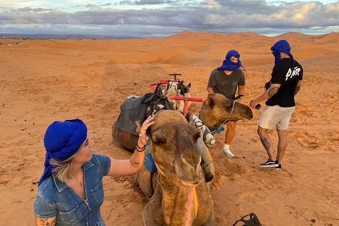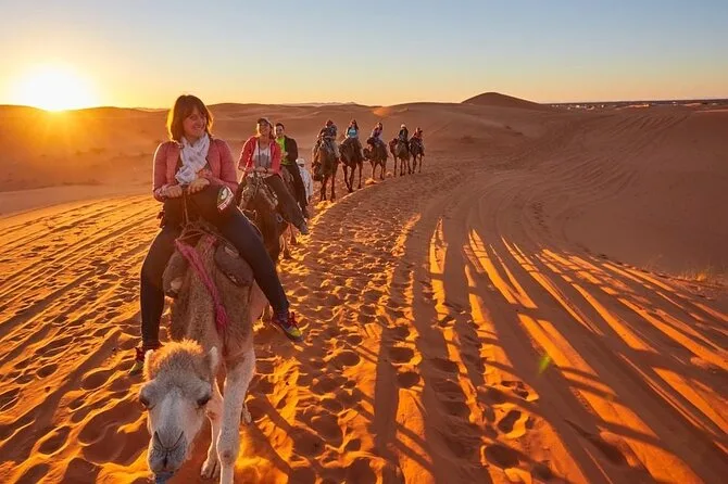 Du durchquerst Marokko von Fes nach Marrakech mit einem lokalen Guide – Kamelritt bei Sonnenuntergang in Erg Chebbi, Schlafen unter Sternen in einem Luxus-Zelt, Wanderung durch die Todra-Schlucht und Erkundung alter Kasbahs wie Ait Ben Haddou, bevor du wieder in die Lichter der Stadt eintauchst.