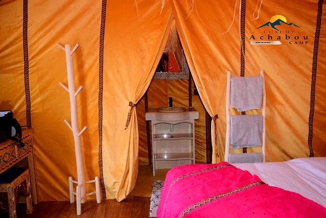 Eine Nacht verbringst du in einem Luxus-Wüstencamp in Merzouga, eine weitere im Rose Valley Hotel oder ähnlich in Ouarzazate.