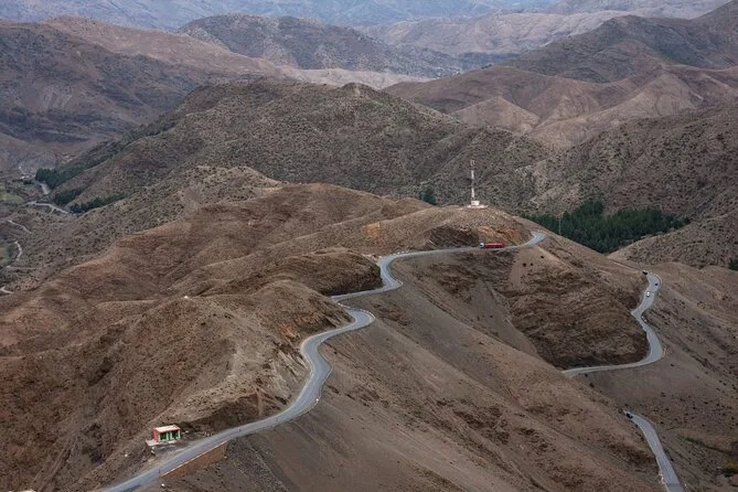 Die Fahrt dauert mehrere Stunden pro Strecke und führt über den Tizi-n'Tichka Pass im Atlasgebirge.