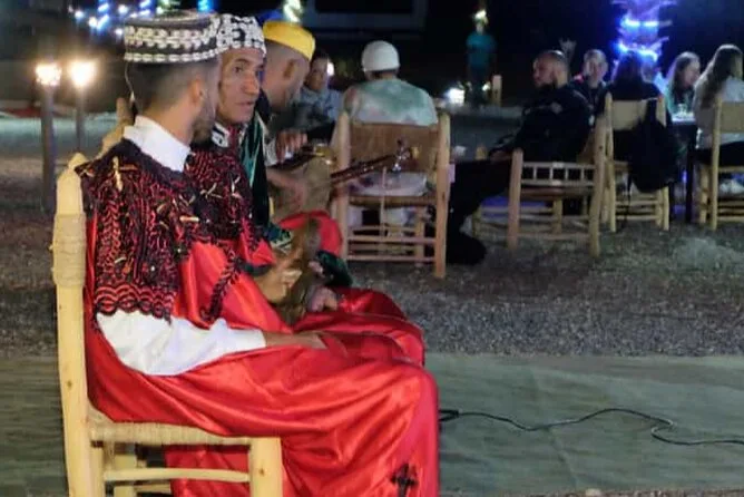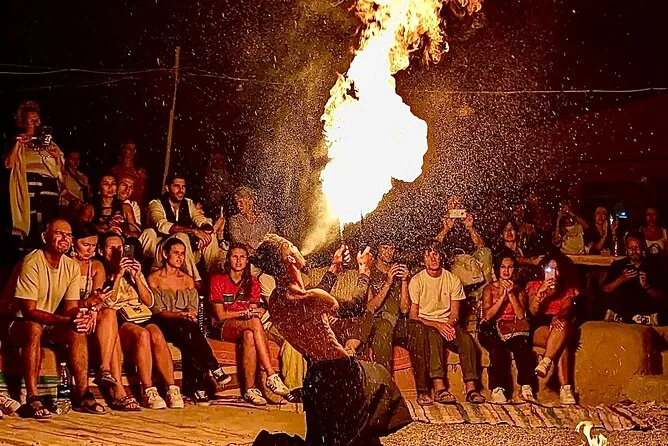 Live-Berbermusik, nomadische Geschichten am Lagerfeuer, rhythmische Trommeln und eine Feuershow sorgen für Unterhaltung.