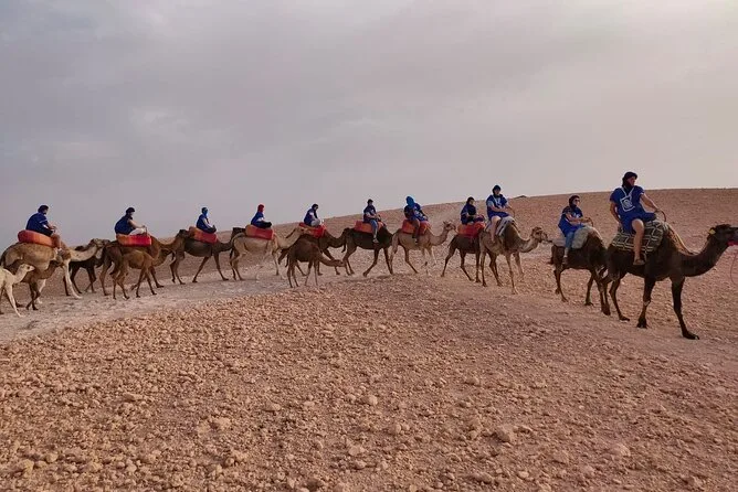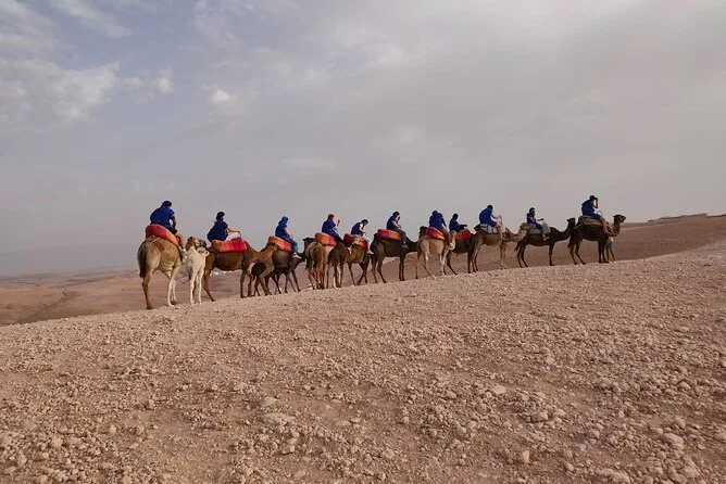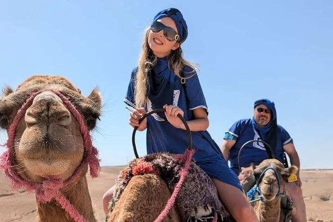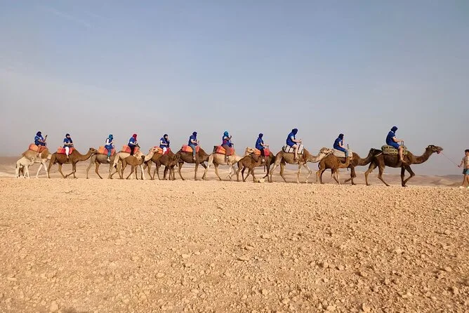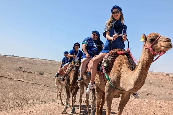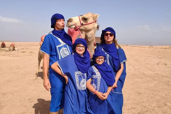 Dein Tag umfasst die Abholung vom Hotel mit klimatisiertem Fahrzeug, Unterstützung durch freundliche lokale Guides, die Berber-Outfits für lustige Fotos bereitstellen, einen einstündigen Kamelritt durch die Gärten und Villen der Palmeraie sowie eine erfrischende Minztee-Pause, bevor es entspannt zurück in die Stadt geht – wahrscheinlich noch mit etwas Sand an den Schuhen.