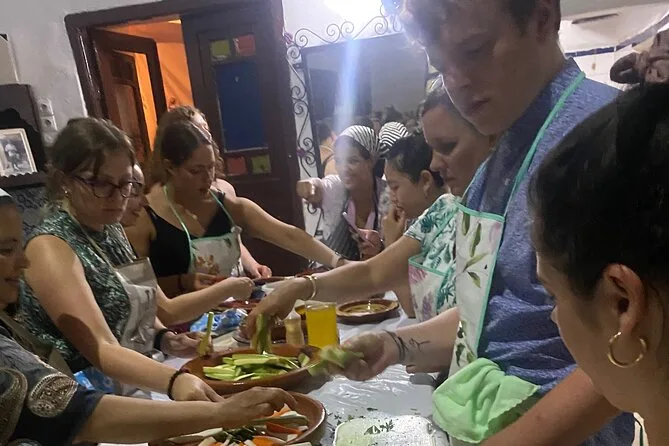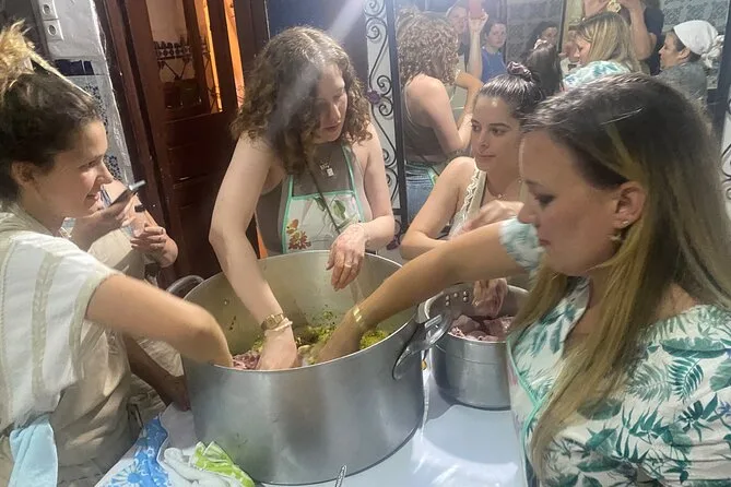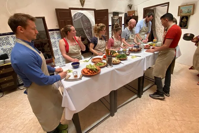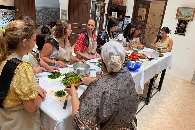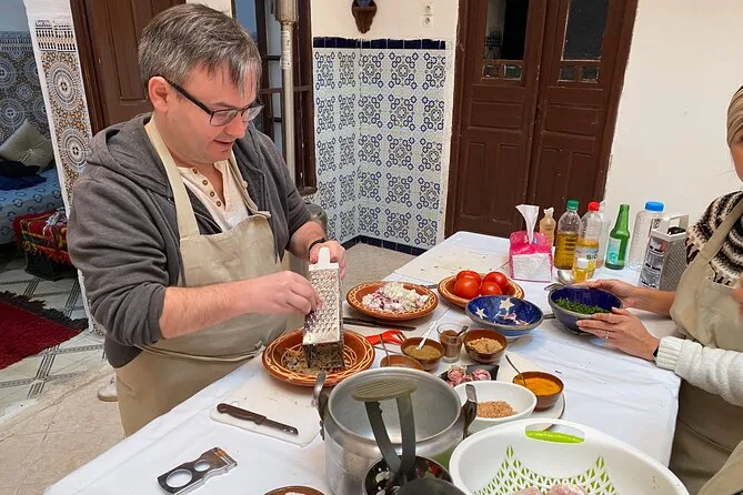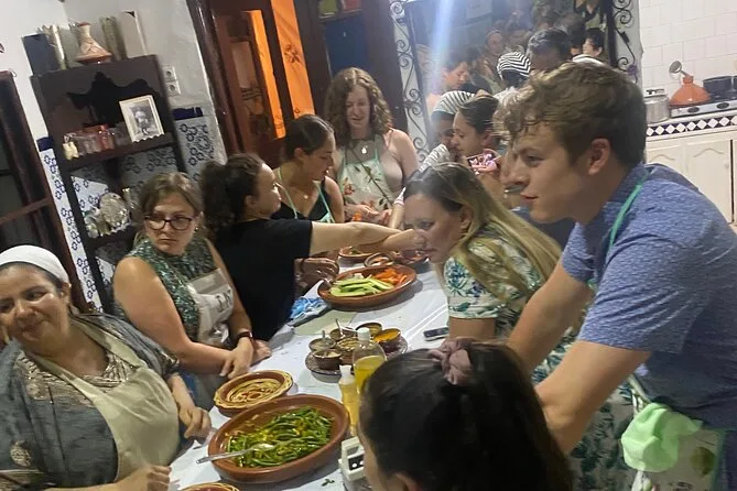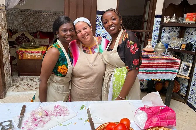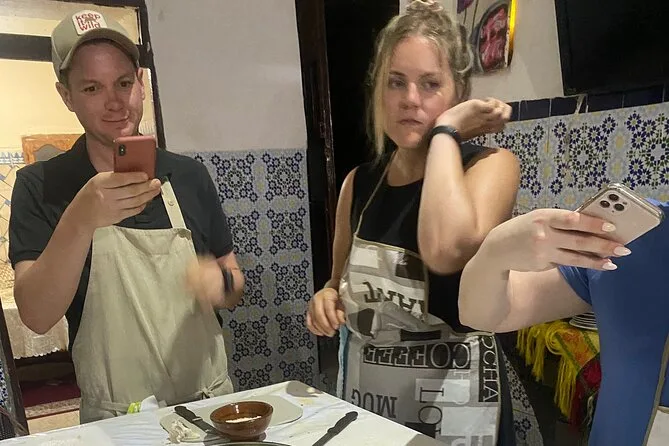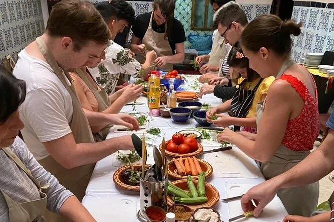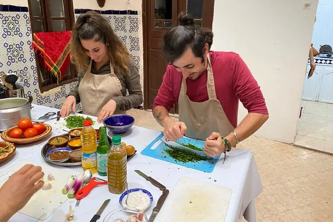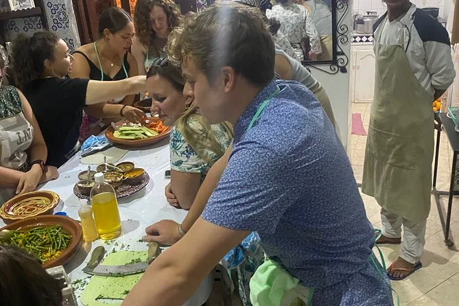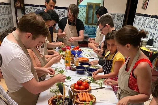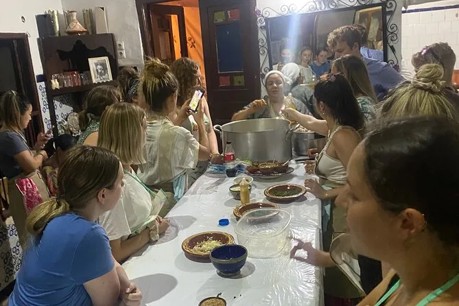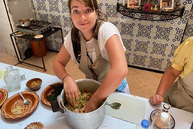 In ihrer Küche fühlte es sich an wie bei jemandem zu Hause – nicht wie in einem Kursraum. Überall bunte Fliesen, und ein niedriger Tisch war fürs Frühstück gedeckt. Laila zeigte uns, wie man Minztee „richtig“ einschenkt (ihre Worte) – hoch aus der Kanne, damit er schäumt. Sie lachte, als ich etwas auf die Tischdecke spritzte. Dann wurden die Hände schmutzig bei Zucchini Charmoula und karamellisierten Karotten; sie sorgte dafür, dass jeder jedes Gewürz probierte, bevor es in den Topf kam. Es hat etwas Besonderes, von jemandem zu lernen, der diese Gerichte seit Jahrzehnten kocht – während sie mit einer Hand eingelegte Zitronen schnitt, erzählte sie Geschichten aus ihren Zeiten im alten Gästehaus.