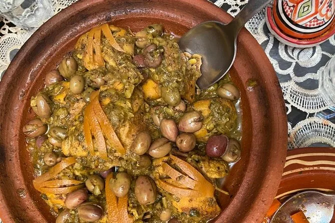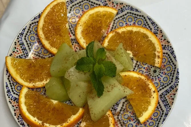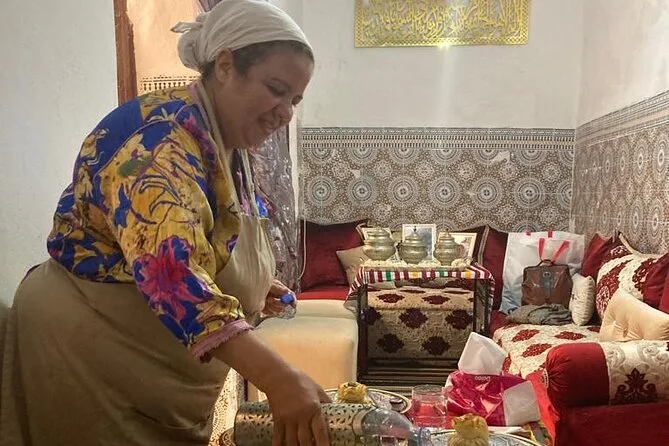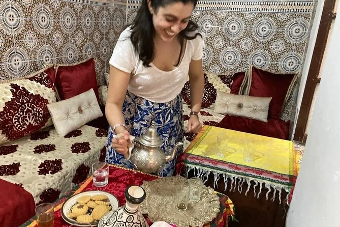 Dein Morgen startet mit Frühstück und frisch zubereitetem marokkanischem Minztee in Chef Lailas Küche, dazu gibt es den ganzen Kurs über Wasser, Kaffee oder Tee nach Wunsch, alle Zutaten für die Gerichte und viele Geschichten, bevor es zurück in Marrakesch geht.