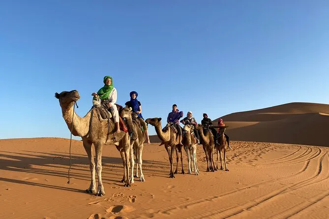 Deine drei Tage beinhalten Abholung vom Hotel in Marrakesch, klimatisierten Transport über Bergpässe und durch Täler mit vielen Fotostopps und Teepausen, geführte Spaziergänge durch historische Orte wie die Kasbah von Ait Ben Haddou, Übernachtungen in einem gemütlichen Riad und einem Wüstencamp bei Merzouga mit Abendessen unter den Sternen der Sahara – dazu Kamelritte in den Dünen und sogar Sandboarding, falls du dich traust.