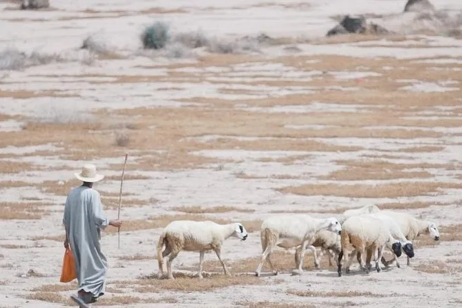 Dein Tag beinhaltet ein passendes Fahrrad, Wasserflaschen für unterwegs und Snacks zwischendurch. Zum Frühstück teilst du frisches Brot, Oliven und Minztee – ganz im marokkanischen Stil. Alles begleitet von Einheimischen, die die Gegend wie ihre Westentasche kennen.