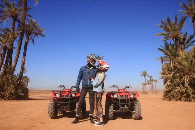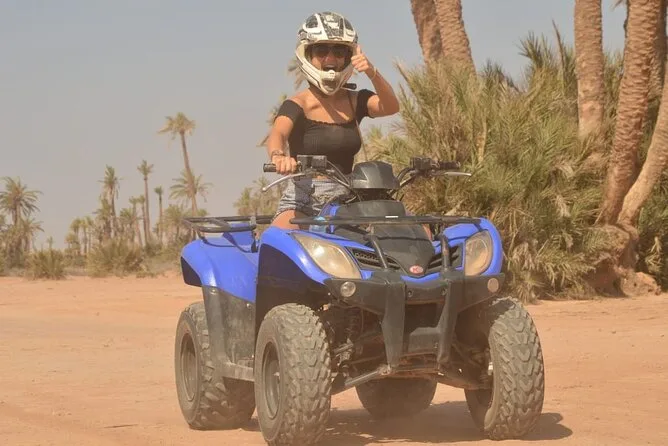 Dein Tag beinhaltet Abholung und Rückfahrt vom Hotel in Marrakesch, die Nutzung eines automatischen Quads mit Helm, Begleitung durch einen erfahrenen lokalen Guide während der Wüstentour sowie eine Pause mit süßem marokkanischem Minztee vor der Rückkehr in die Stadt.