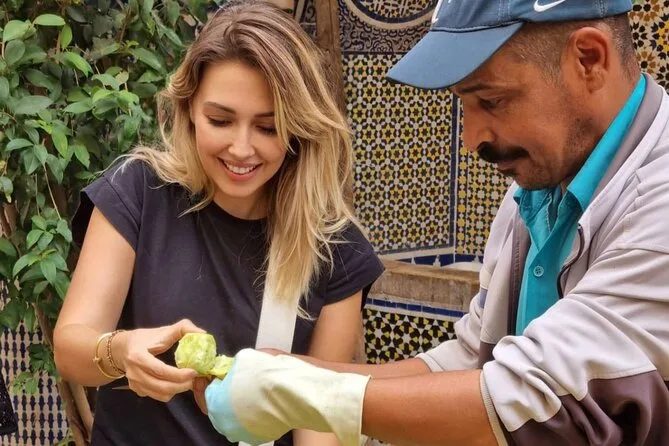 Unser Guide Youssef führte uns direkt in das Labyrinth der zum UNESCO-Weltkulturerbe gehörenden Altstadt. Ehrlich gesagt hätte ich mich ohne ihn in fünf Minuten verlaufen. Er zeigte uns winzige Details, die mir nie aufgefallen wären: handgeschnitzte Zedertüren, Katzen, die in Sonnenstrahlen dösten, und eine Bäckerei, in der Einheimische ihren Teig zum Mittagessen abgeben. Wir schlüpften hinein in Dar Bouanania und die Al-Attarine-Madrasa – beide Orte sind viel ruhiger, als man erwartet, doch jede Kachel erzählt eine Geschichte, wenn man genau hinsieht.