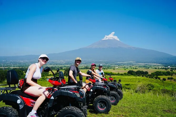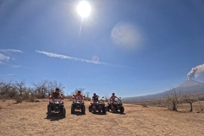 Dein Tag beinhaltet zweisprachige Guides, die dich mit dem ATV durch Atlixcos Felder führen (Helm inklusive), Stopps an malerischen Hügeln und dem UFO-Denkmal in Metepec sowie einen Snack und ein Getränk am Panorama-Aussichtspunkt, bevor ihr gemeinsam zurückfahrt.