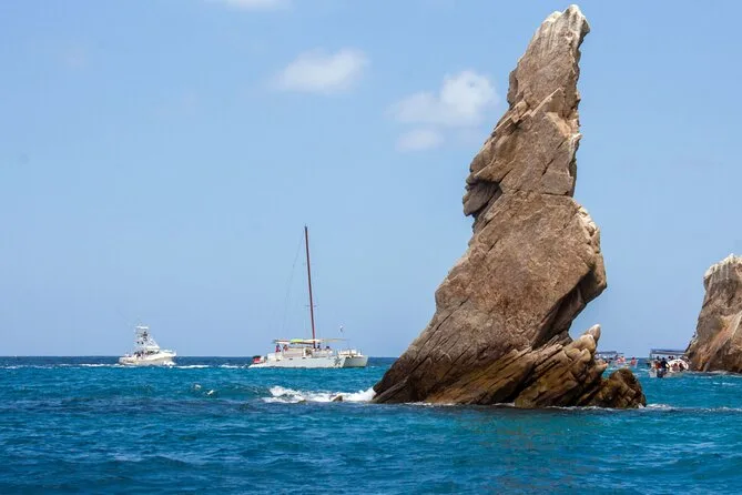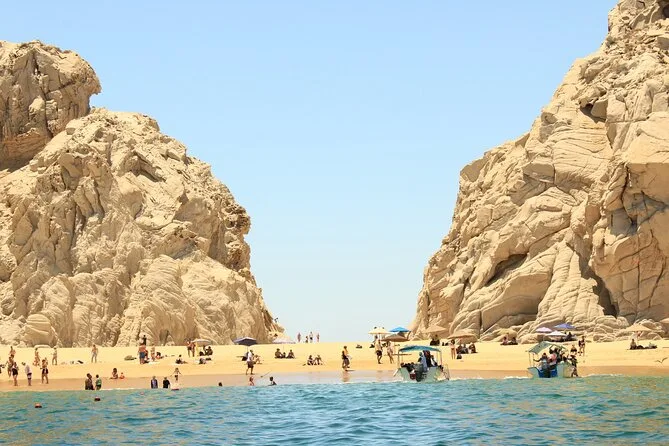 Dein Tag umfasst eine gemeinsame Glasbodenboot-Fahrt durch die Bucht von Cabo San Lucas mit einem lokalen Guide, der Stopps wie Pelican Rock und die Piratenhöhle erklärt. Für Komfort ist eine Toilette an Bord, und je nach Wetter kannst du gegen Aufpreis an einem von drei Stränden aussteigen. Die Rückkehr erfolgt zu festen Zeiten.