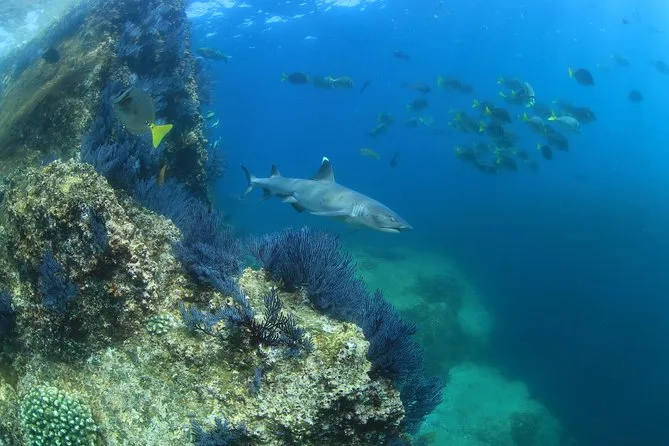 Dein Tag beinhaltet Hotelabholung (nach vorheriger Bestätigung), eine PADI-Sicherheitseinweisung im flachen Pool mit zertifizierten Tauchlehrern, die Nutzung eines 45-Fuß-Tauchboots mit Toilette und US-Lifeguard-Zertifikat sowie Snacks während der Tour bei Land’s End, bevor es gemeinsam zurück ans Ufer geht.