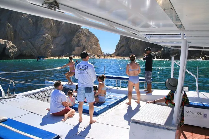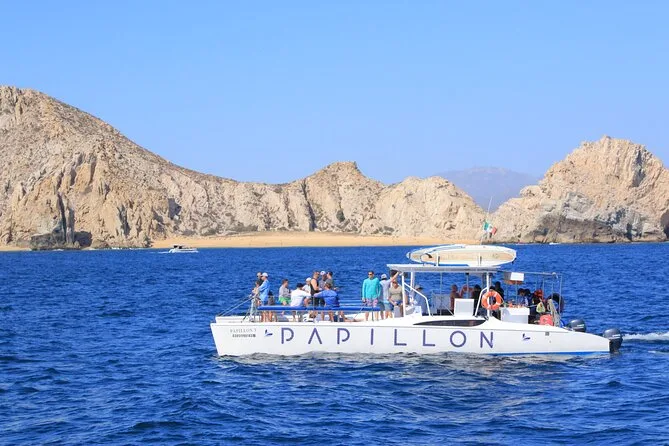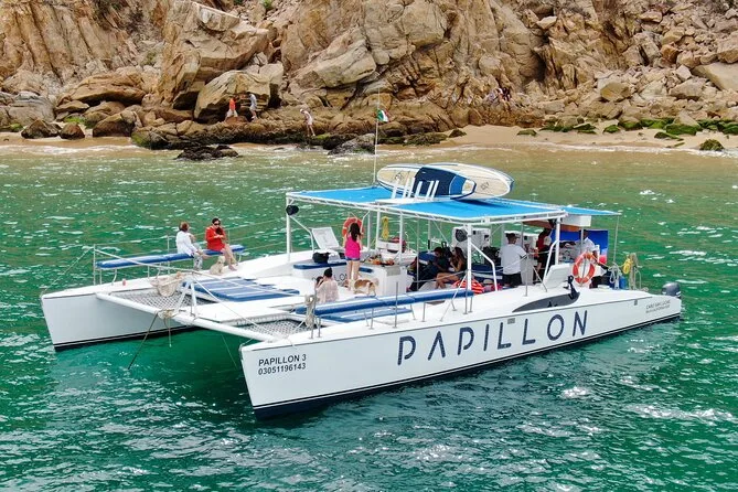 Steig mit deiner Gruppe auf einen privaten Katamaran in Cabo San Lucas, gleite über das strahlend blaue Wasser zum Schnorcheln und Paddeln im Sea of Cortez, entspanne bei Mittagessen und Open Bar, während lokale Guides Geschichten erzählen und mit etwas Glück Wale oder Delfine zeigen. Ein lebendiger und zugleich entspannter Tag, den du lange in Erinnerung behalten wirst.