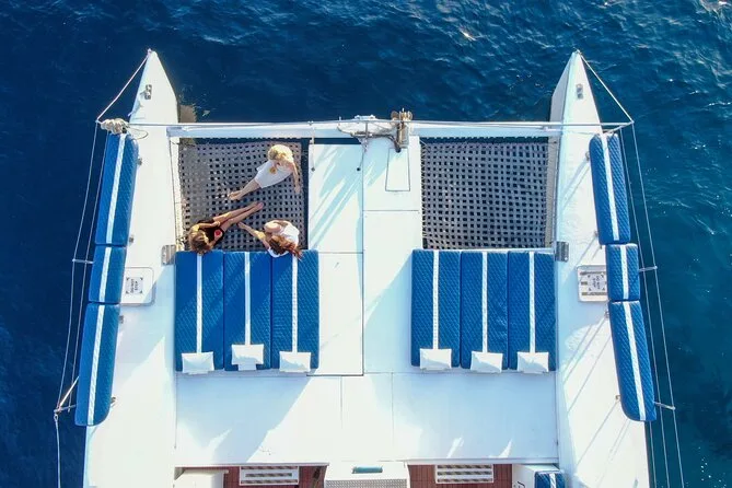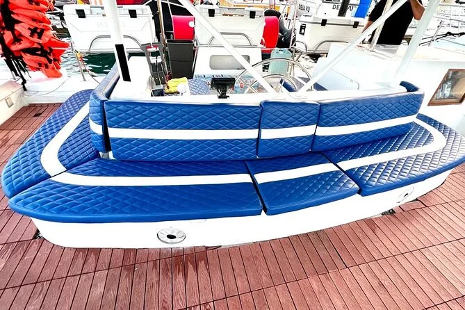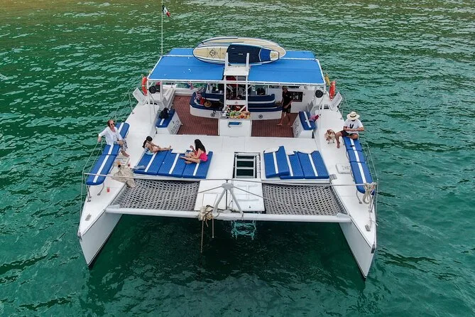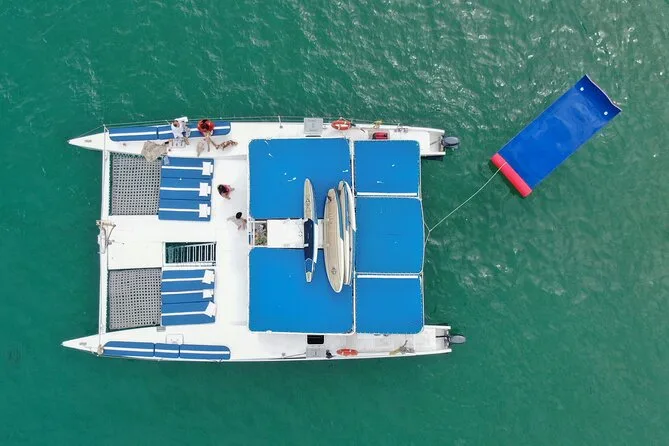 Dein Tag umfasst Hin- und Rücktransfer vom Hotel in klimatisiertem Fahrzeug, alle Steuern und Gebühren, Nutzung von Paddleboards, Kajaks, schwimmender Matte und kompletter Schnorchelausrüstung sowie unbegrenzte Getränke von der Open Bar mit Cocktails und Softdrinks. Das Mittagessen an Bord besteht aus Truthahnbaguette, frischen Obstplatten, Guacamole mit Salsas und Chips – und natürlich viel Spaß mit einer professionellen lokalen Crew, bevor es zurück ans Ufer geht.