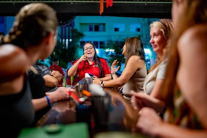 Dein Abend beinhaltet den Hin- und Rücktransfer vom Hotel mit klimatisierten Fahrzeugen, bevorzugten Einlass und reservierte Tische an fünf der besten lokalen Taco-Spots in Cancun (plus Nachtisch im Parque Las Palapas), jeweils ein Getränk pro Stopp mit über 15 Sorten mexikanischem Bier oder Softdrinks, geführt von einem englischsprachigen Guide, der unterwegs spannende Geschichten erzählt und dich am Ende satt und glücklich zurück ins Hotel bringt.