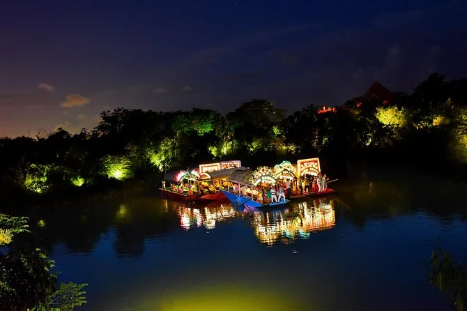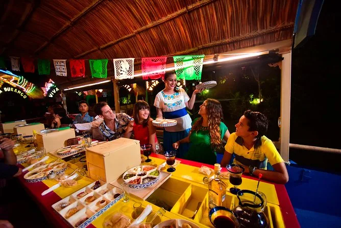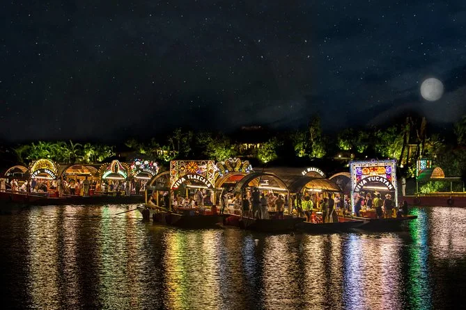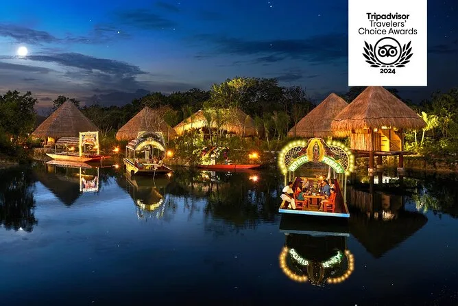Dein Abend beinhaltet Prioritätseinlass mit Abholarmbändern auf dem Weg zu Xoximilco Cancun, eine nächtliche Tour auf einem bunt geschmückten Trajinera-Boot durch die Kanäle, unbegrenzte Getränke aus der Tequila- und Bier-Open Bar sowie Softdrinks und aguas frescas, ein dreigängiges traditionelles mexikanisches Verkostungsmenü (vegetarische Optionen möglich) und jede Menge Live-Musik von Mariachi bis Marimba während deiner schwimmenden Fiesta, bevor es spät abends zurückgeht.