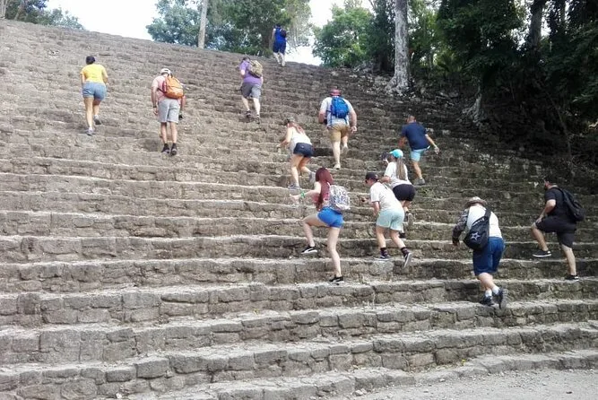 Normalerweise bin ich kein großer Geschichtsfan, aber als ich unter diesen riesigen Plattformen stand (angeblich aus dem Jahr 700 n. Chr. – Wahnsinn!), ertappte ich mich dabei, wie ich mit der Hand über den Stein strich, nur um zu spüren, wie kühl er im Vergleich zur Luft war. Marco erklärte, wie die Maya alles ohne Metallwerkzeuge gebaut haben. Er zeigte uns sogar eine kleine Pflanze, die nach Zitrus roch, wenn man sie zwischen den Fingern zerdrückte – er nannte sie „limoncillo“. Ich glaube, ich hab den Duft noch auf meinem Rucksack. Nach einer ausgiebigen Erkundungstour und viel zu vielen Fotos (keine einzige bereut), stiegen wir wieder in den Van – mit kaltem Wasser und ein paar verschlafenen Lächeln im Gepäck.