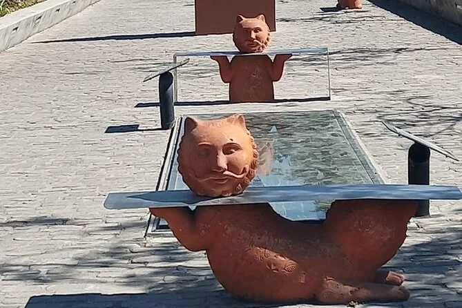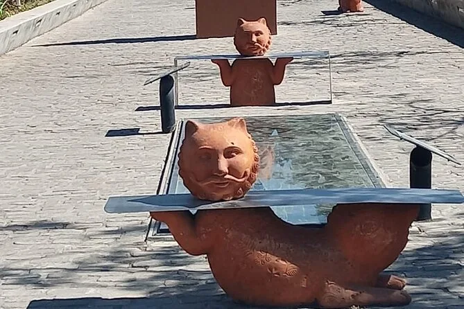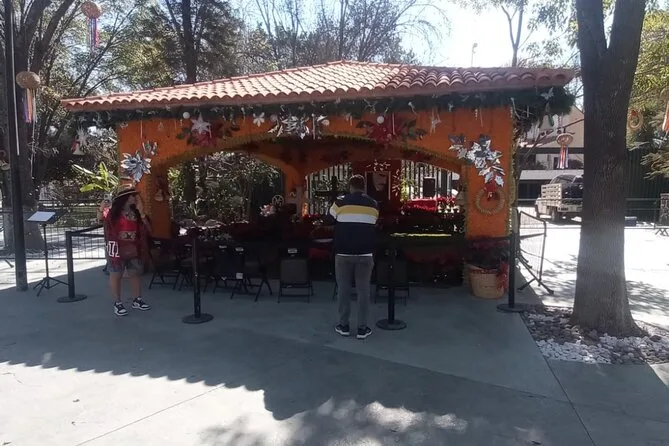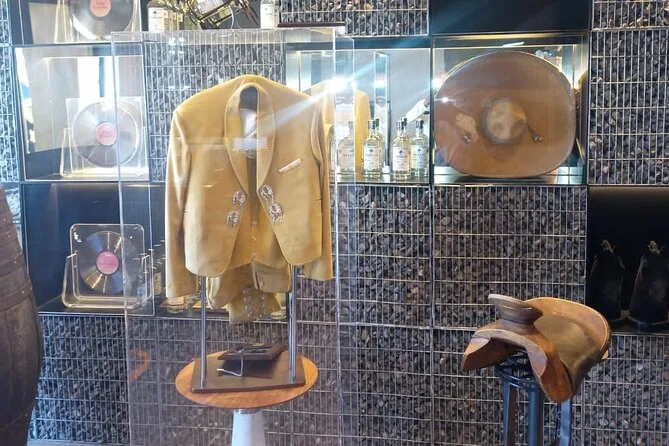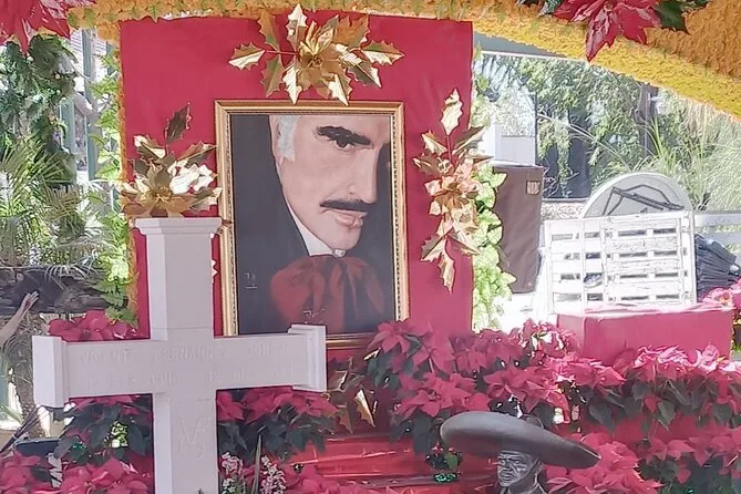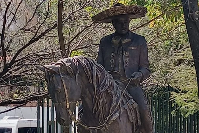 Danach fuhren wir zur Ranch von Vicente Fernández. Dort gab es einen stillen Moment an seinem Grab – nicht traurig, eher voller Respekt. Einige Einheimische legten Blumen nieder; Ana erzählte, wie viel er den Leuten hier bedeutete. Im Souvenirladen nebenan lagen Hüte und CDs überall – fast hätte ich mir eine Gürtelschnalle gekauft, aber ich traute mich nicht. Die Fahrten zwischen den Stationen waren entspannt – Klimaanlage lief, Wasserflasche in der Hand – und Ana zeigte immer wieder kleine Details: ein Wandbild hier, ein Obststand dort. Es fühlte sich an, als kenne sie jeden.