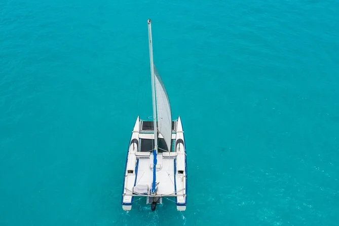 Dein Tag umfasst die Anmeldung am Playa Tortugas Steg, Segeln auf einem privaten Katamaran mit professionellem Guide, Schnorchelausrüstung für El Meco Riff, unbegrenzte Open Bar, ein regionales Buffet im exklusiven Strandclub mit Duschen und Liegestühlen – und bei gutem Wetter den Spinnaker-Flug, bevor es abends zurück nach Cancun geht.
