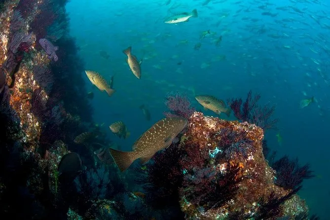 Dein Tag umfasst drei geführte Bootstauchgänge im Marinepark von Cabo San Lucas und im Corridor, inklusive aller Flaschen und Bleigewichte; ein professioneller lokaler Tauchguide begleitet jede Gruppe. Zwischen den Tauchgängen bekommst du Wasser und Sandwiches zum Mittagessen, bevor es zurück ans Ufer in Los Cabos geht – alle Steuern sind inklusive.