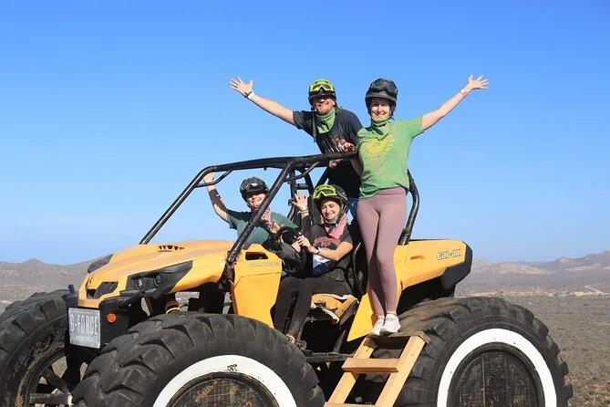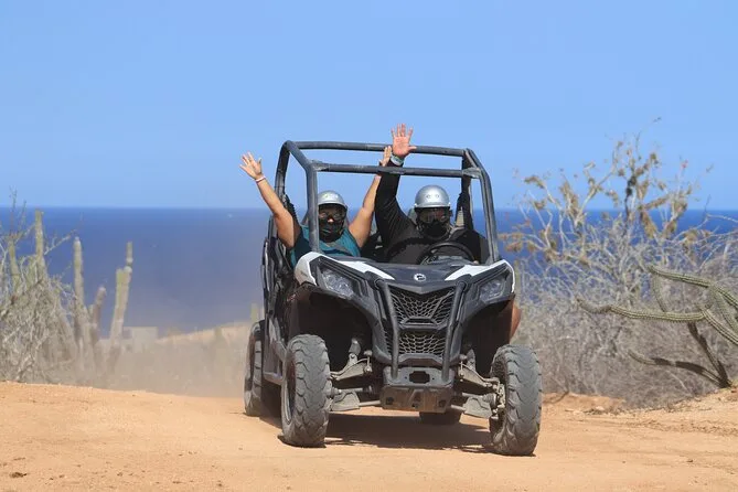 Dein Tag umfasst bequeme Hotelabholung und Rückfahrt in Los Cabos, alle nötige Sicherheitsausrüstung für die UTV-Fahrt durch Wüste und Strand bei Migriño, Flaschenwasser während des Abenteuers, einen erfahrenen lokalen Guide mit spannenden Geschichten, Kids Club-Optionen für Familien oder junge Reisende sowie eine Tequila-Verkostung zum Abschluss, bevor es zurück zum Hotel geht.