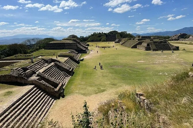 Dein Morgen beginnt mit Hotelabholung in Oaxaca Stadt, bequemer Hin- und Rückfahrt, Eintritt zu Monte Albán und einer Führung durch einen englisch- und spanischsprachigen lokalen Guide, der dich zu den Ruinen und Gravuren begleitet, bevor es gegen Mittag zurückgeht.