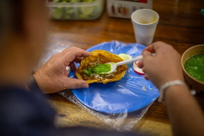 Dein Tag beinhaltet acht großzügige Verkostungen in sorgfältig ausgewählten Restaurants und Straßenständen im Zentrum von Puerto Vallarta – dazu gibt es ausreichend Flaschenwasser und eine freundliche lokale Guide, die für gute Stimmung und einen flüssigen Ablauf sorgt.