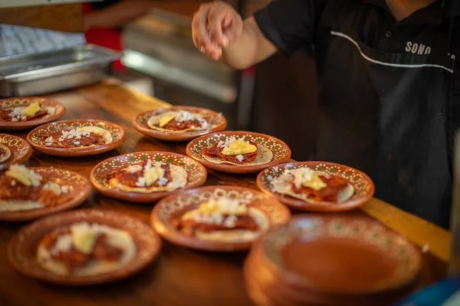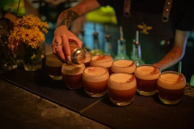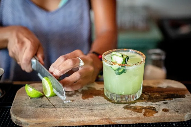 Erkunde Puerto Vallartas Altstadt mit einem lokalen Guide, koste fünf verschiedene Tacos und genieße sechs mexikanische Cocktails – von rauchigen Mezcalinis bis zu Jalapeño-Margaritas. Dabei lernst du Agaven-Spirituosen wie Raicilla und Tequila kennen, mixt selbst Drinks und lachst über scharfe Salsas. Diese Geschmäcker bleiben dir lange im Gedächtnis.