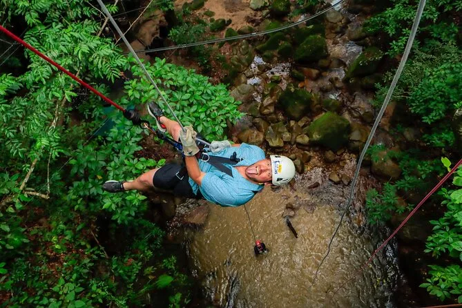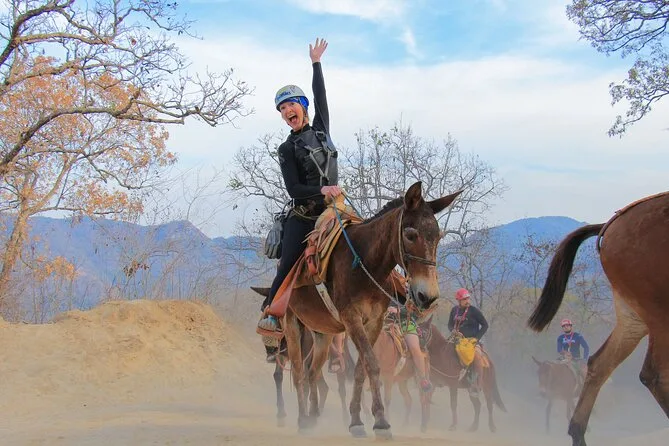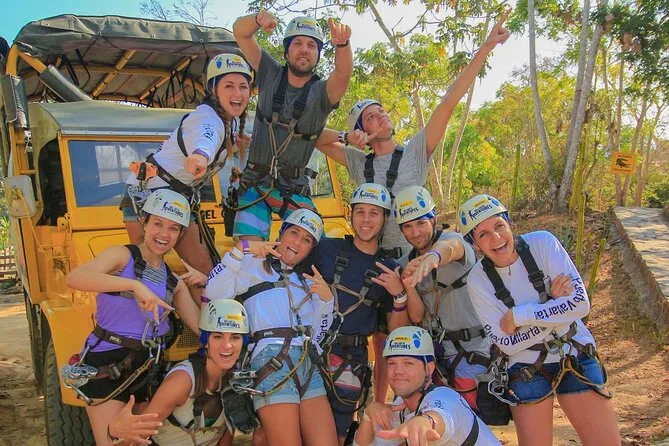 Dein Tag startet mit Abholung per Speedboot in Puerto Vallarta, danach geht’s mit dem 4x4 durch die Sierra Madre. Die komplette Sicherheitsausrüstung ist inklusive, ebenso Schließfächer am Basecamp und Handtücher zum Abtrocknen nach dem Nasswerden. Frisches Obst, mexikanische Salsa-Snacks und gereinigtes Wasser gibt’s den ganzen Tag. Vergiss nicht, Wechselkleidung einzupacken – du wirst matschig und nass, bevor es zurück in die Stadt geht.