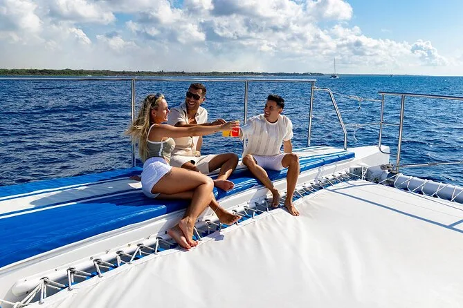 Dein Tag beinhaltet den Hin- und Rücktransfer von Hotels in der Riviera Maya, komplette Schnorchelausrüstung (wenn das Wetter mitspielt), Paddleboards und Wasser-Matten für extra Spaß im Meer, ein frisches leichtes Mittagessen an Bord und die Open Bar während der gesamten Fahrt – alles begleitet von freundlichen, zweisprachigen Guides, die dafür sorgen, dass du dich rundum wohlfühlst.