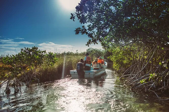 Dein Tag umfasst die Abholung und Rückfahrt im Hotel in Tulum, alle Bootsfahrten durch Sian Ka’ans Lagunen mit einem lokalen Guide, die Nutzung von Schnorchelausrüstung und Schwimmweste (Pflicht), frisches Obst und Snacks sowie Wasser am Vormittag – und ein entspanntes Mittagessen, bevor es zurückgeht.